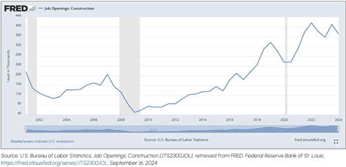 - Construction is emerging as an important area for robotics, offering a safer and more efficient alternative in a traditionally manual and high-risk industry slow to adopt innovation. According to McKinsey, the $12tn global architecture, engineering, and construction (AEC) industry ranks among the least digitized sectors, creating space for disruption. At the same time, the industry faces acute labor shortages – approximately 440k positions remained unfilled in 2023, and the National Center for Construction Education and Research (NCCER) projects that ~41% of the current workforce will retire by 2031. Robotics has the potential to drive meaningful impact across the construction lifecycle from preconstruction to on-site building. For example, Dusty Robotics‘ FieldPrinter autonomously lays out full-scale BIM designs directly onto jobsite floors, helping crews build with greater precision. Meanwhile, Monumental develops mobile construction robots that collaborate with human workers on-site, focusing initially on autonomous bricklaying. While construction has been slow to adopt new technologies, the combination of workforce pressures and automation positions the sector for significant growth in robotics adoption.